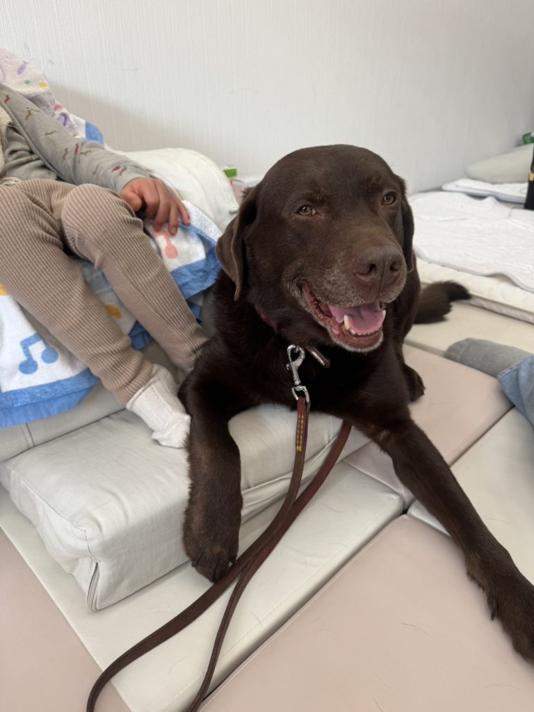 近づきすぎて、やや怖かったり、驚いたり、目で追ってくれたり、動かせない手でも看護師さん達が手で、触れるお手伝いをしてくれて、犬達を感じていただきました。